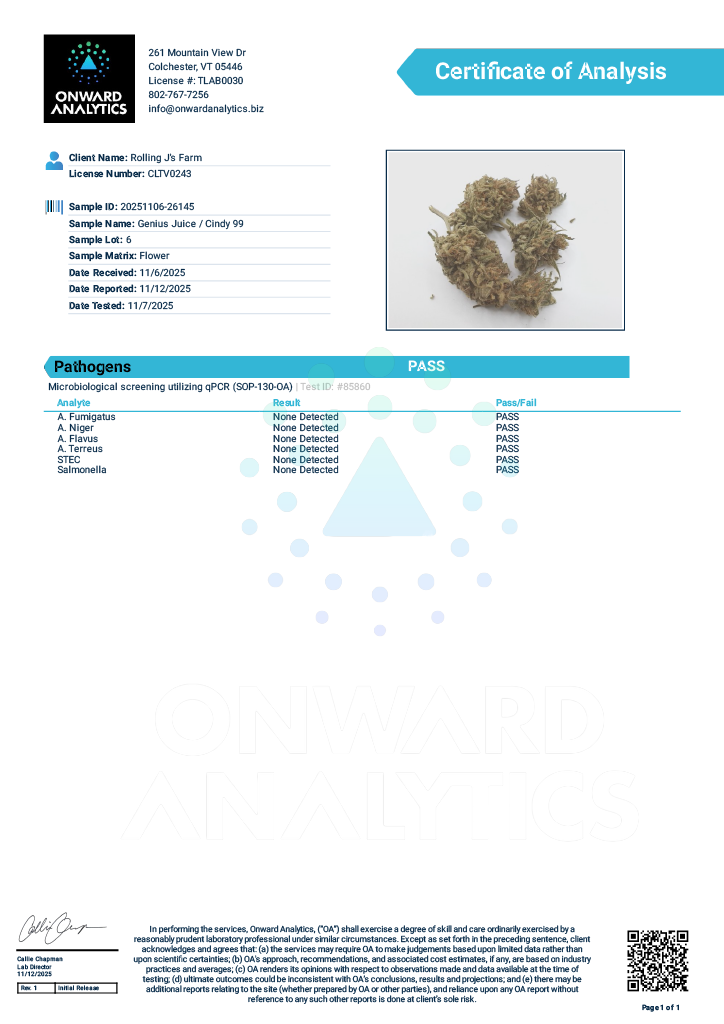 A custom house blend of sweet, gassy, extroverted strains: Dirty Mimosa, Farmer's Daughter, and Genius Juice Cindy 99.