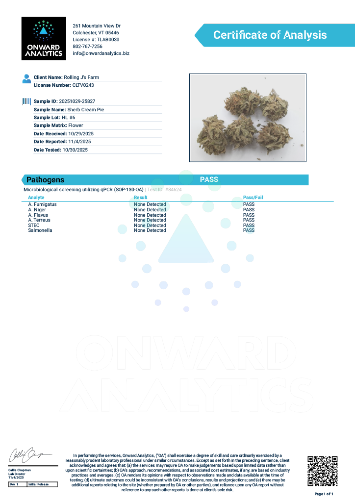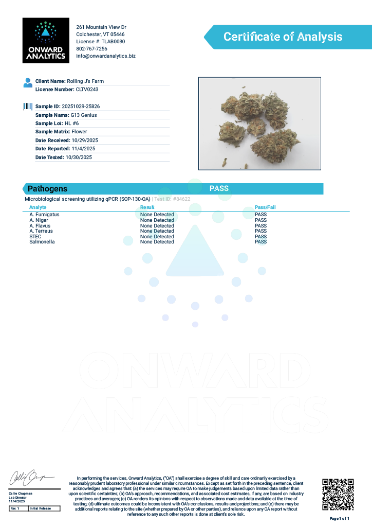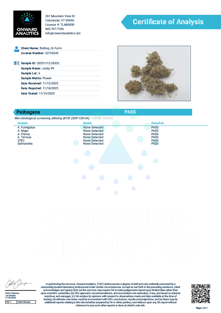 A custom house blend of three strains with diverse flavors but similar happy, sedating effects: Sherbet Cream Pie, Junky 99, and G-13 Genius.